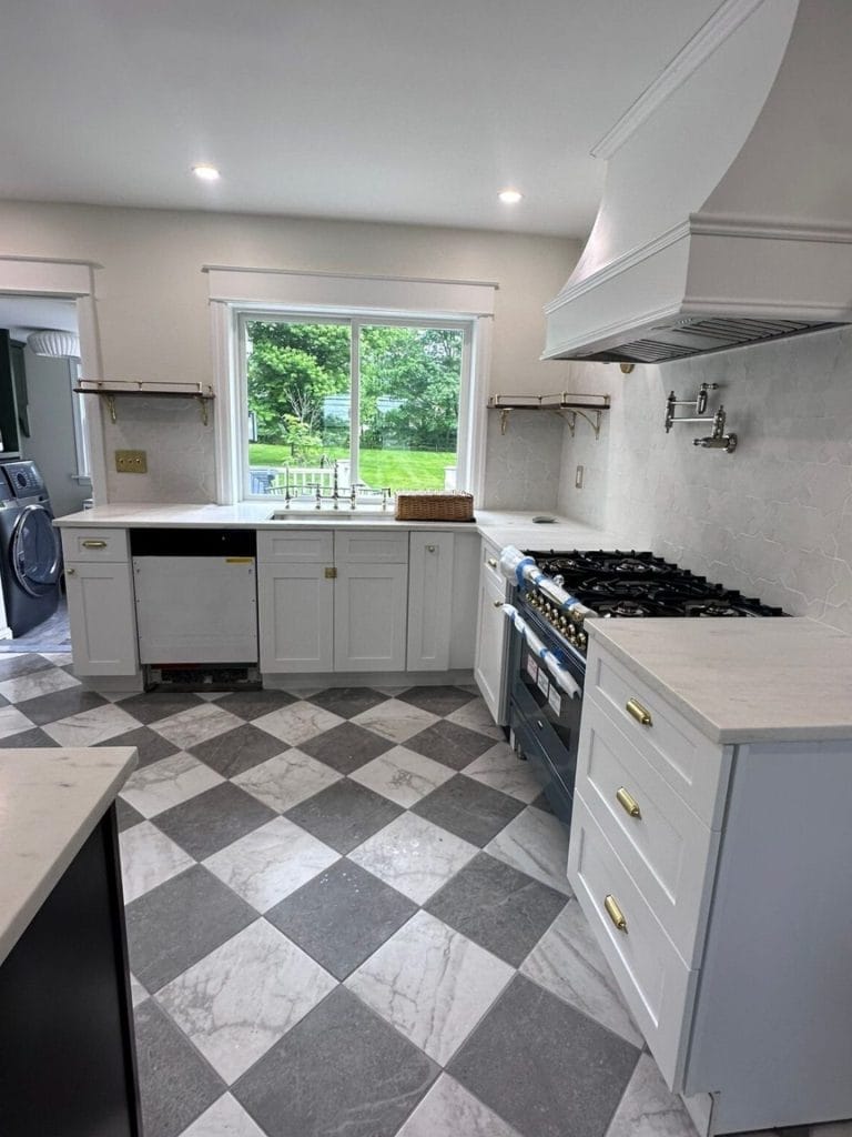 Everything from the floors to the ceilings was replaced. New flooring was installed to complement the modern aesthetic of the kitchen. The ceilings were also replaced, enhancing the overall light and airiness of the room. These changes were crucial in bringing together the vision of a modern kitchen that’s not only beautiful but also practical.