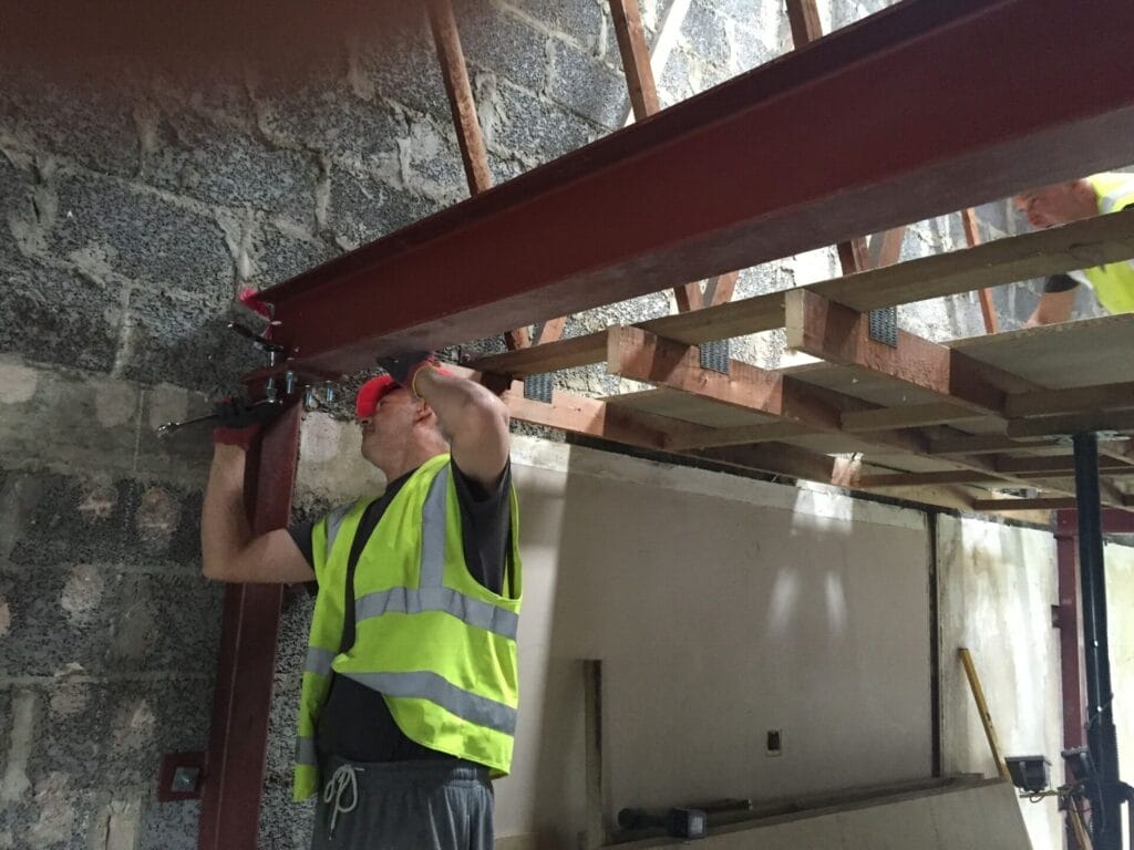 Expert removal of load-bearing walls, temporary shoring, steel or LVL beam installation.